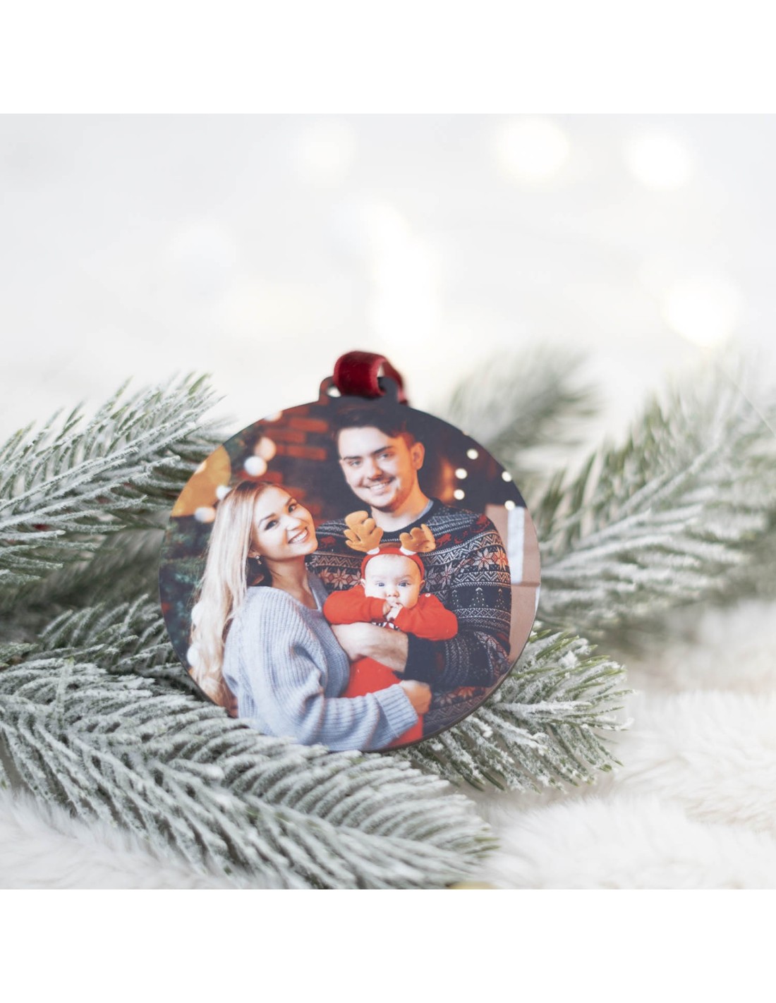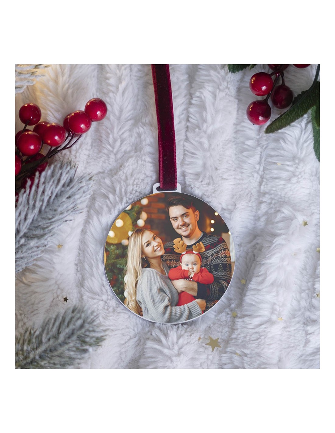 Personaliza con una foto a tamaño completo y crea un adorno navideño que captura la esencia de tus recuerdos más bonitos.