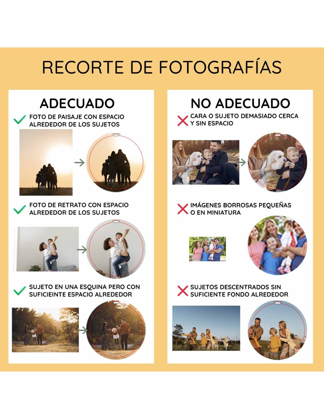 Consejo: elige una foto con suficiente espacio libre alrededor para evitar que se recorten partes importantes. En la versión de madera, las vetas pueden apreciarse a través de la imagen, aportando un encanto artesanal.