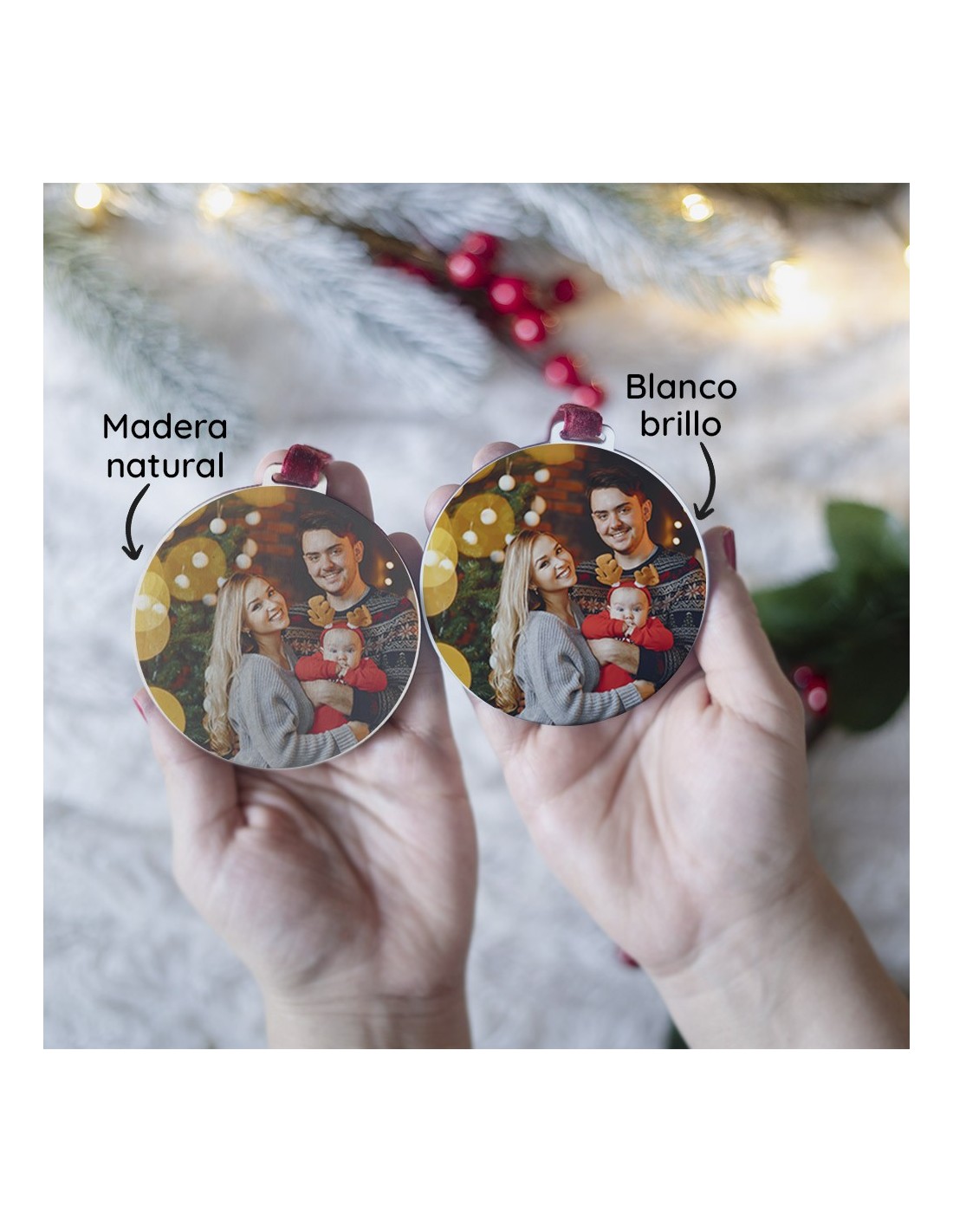 - 🎄 Disponible en dos acabados: madera natural (foto + texto grabado) o blanco brillo (foto y texto impresos).