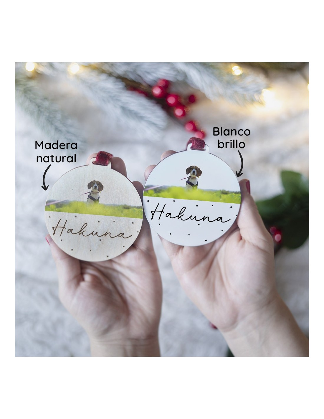 - 🎄 Disponible en dos acabados: madera natural (foto + texto grabado) o blanco brillo (foto y texto impresos).