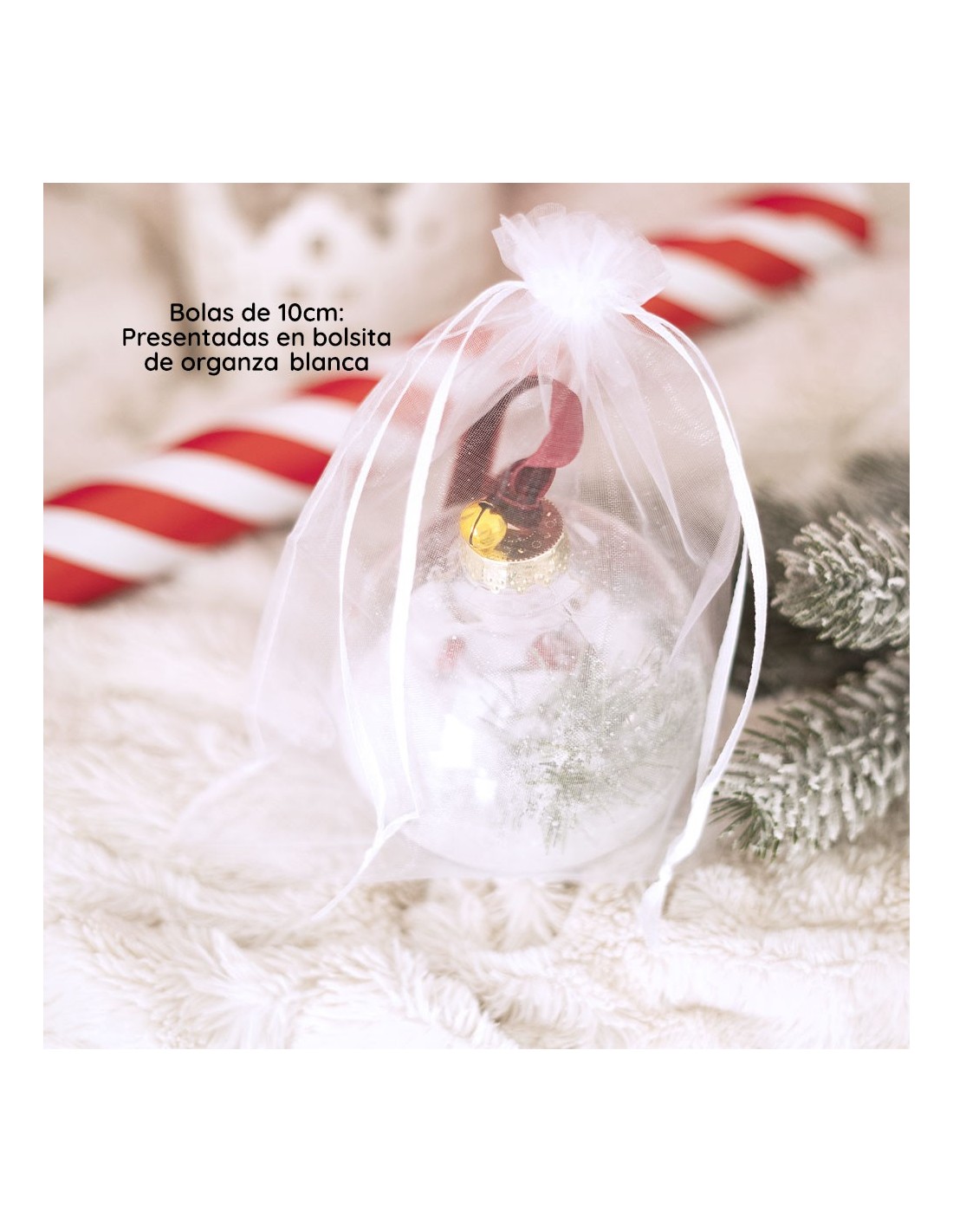 - 🎁 Packaging incluido: las bolas de 8 cm se presentan en bolsa kraft y las de 10 cm en bolsa de organza blanca.