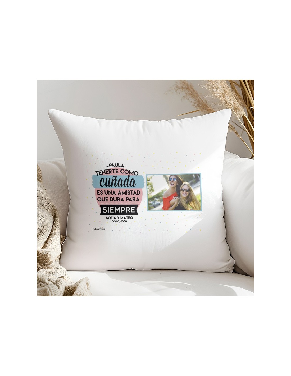 - Nota: La personalización es solo en una cara del cojín. Revisa los detalles del diseño antes de finalizar el pedido para asegurar que quede como lo imaginas.