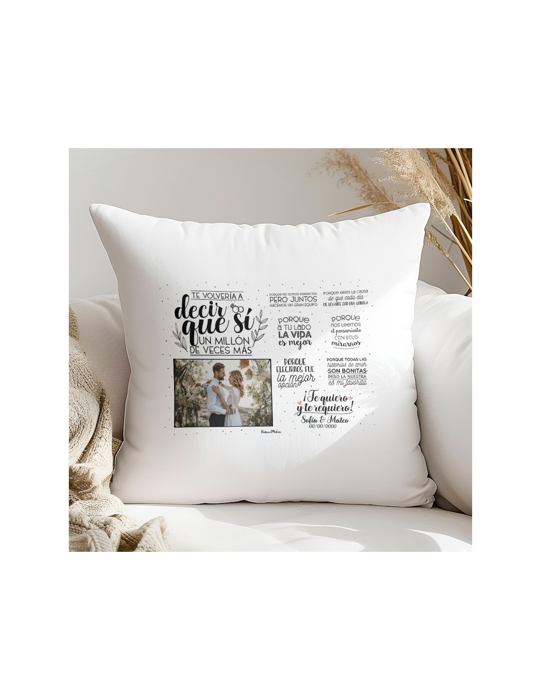 Nuestros cojines son ideales para regalar en ocasiones especiales o para decorar tu hogar. Ya sea para bodas, amigos, o como un detalle único para cualquier habitación, estos cojines añaden estilo y comodidad en cualquier lugar.