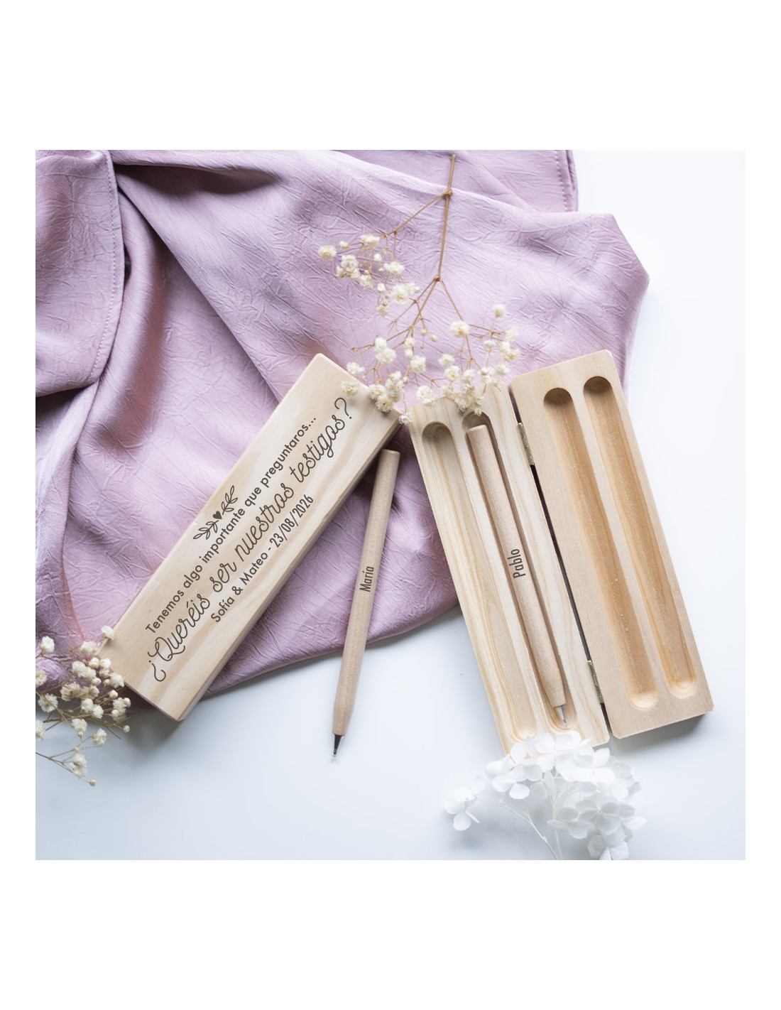 Nuestra caja para bolígrafo de madera de pino natural está diseñada para convertir un detalle cotidiano en un recuerdo con significado. Con capacidad para 1 o 2 bolígrafos, es perfecta para regalar en ocasiones especiales o como agradecimiento elegante y personalizado.