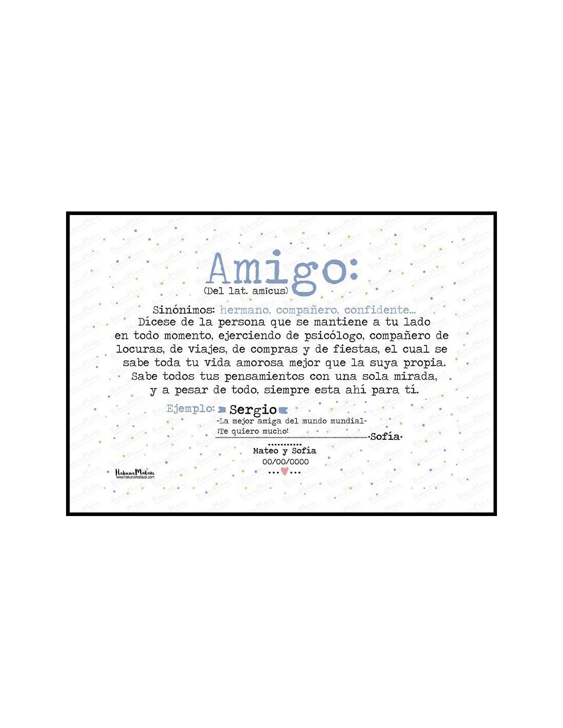 Importante: Si el diseño incluye foto, puedes subirla en orientación horizontal o vertical. Nos encargamos de que se integre perfectamente. Las láminas con marco de 13×18 cm y 21×30 cm incluyen soporte trasero. El tamaño 30×40 cm solo tiene soporte para colgar.