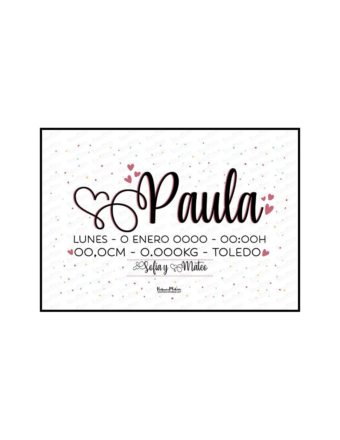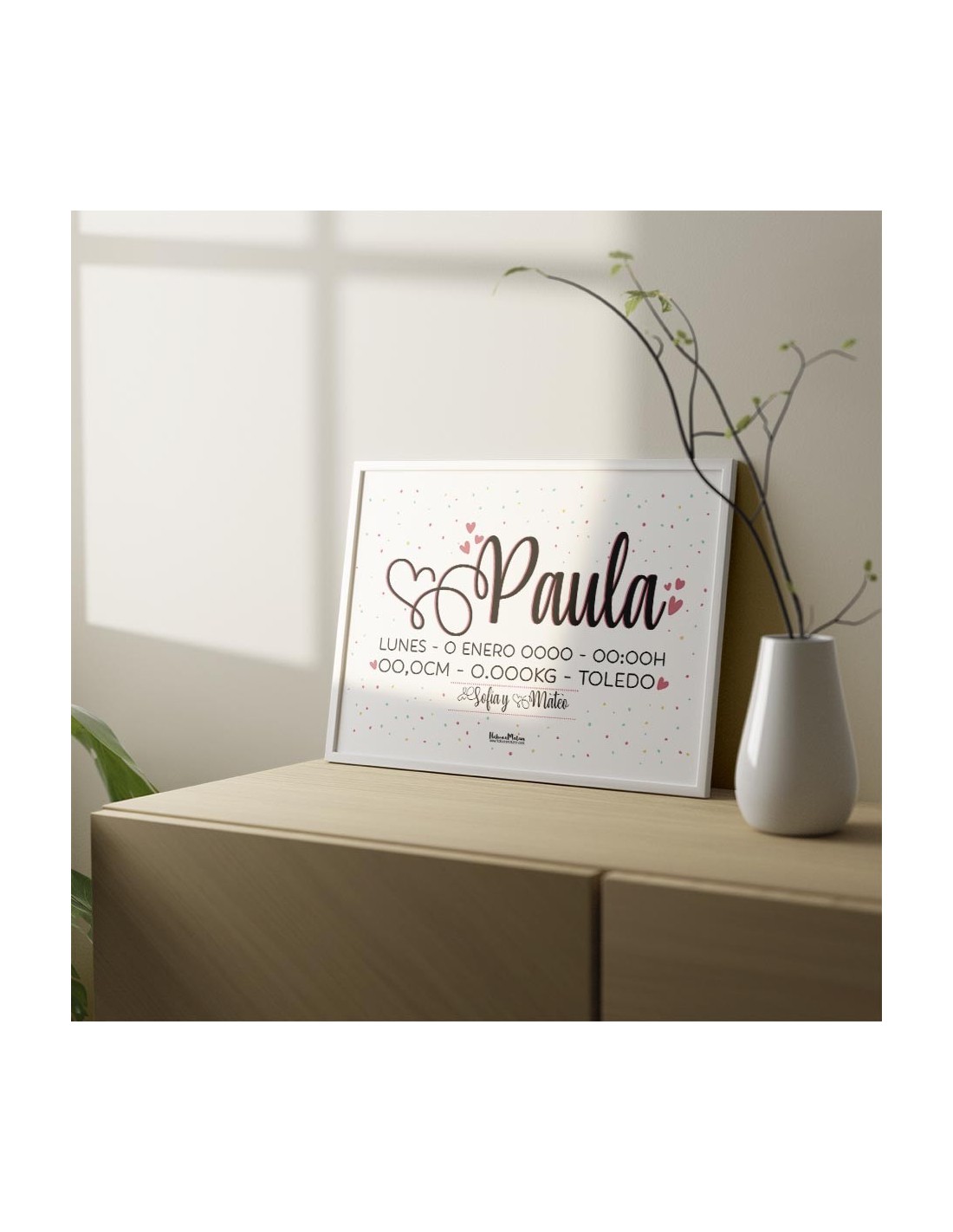 Personaliza con cariño: Elige tu diseño favorito, añade nombres, fechas, frases especiales o incluso una fotografía. Nuestro equipo adaptará cada detalle con mimo para que tu lámina hable de ti.