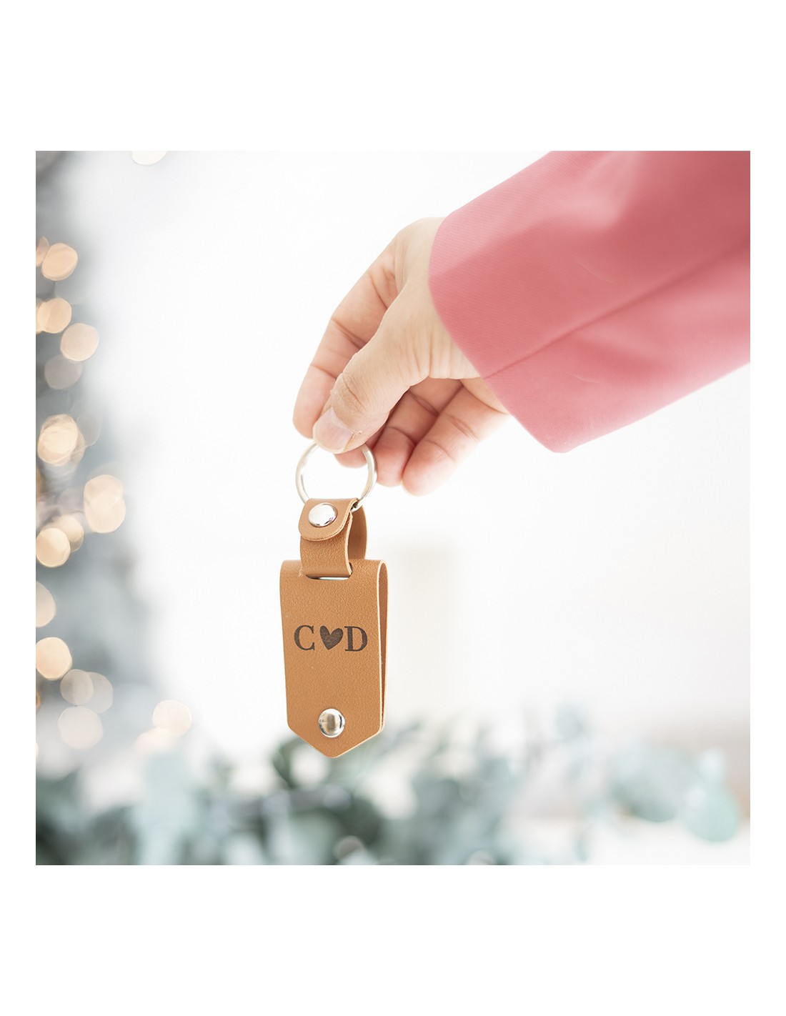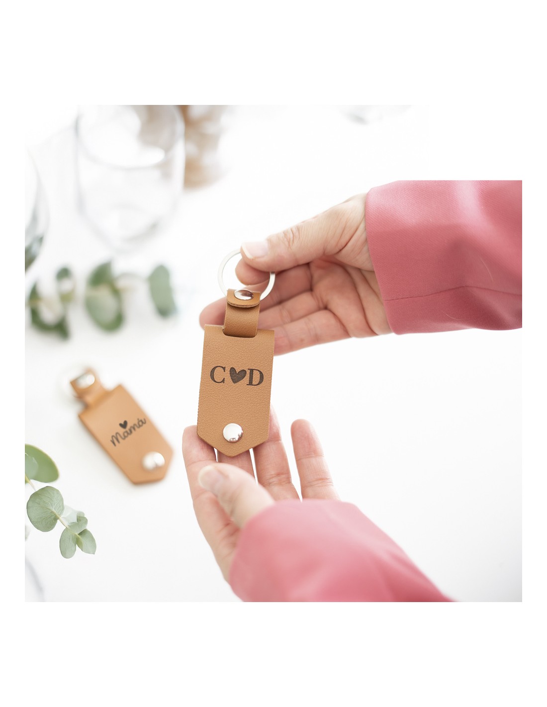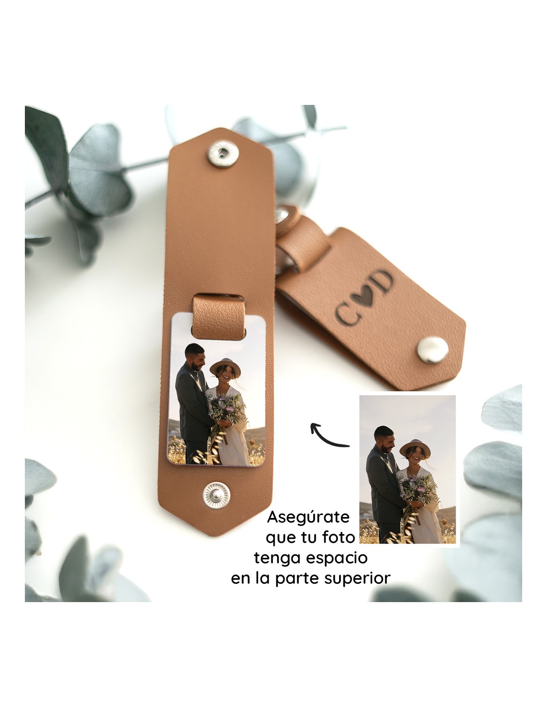 Un recuerdo que te acompaña a todas partes. Este llavero de cuero sintético marrón combina elegancia, emoción y personalización en un solo detalle.