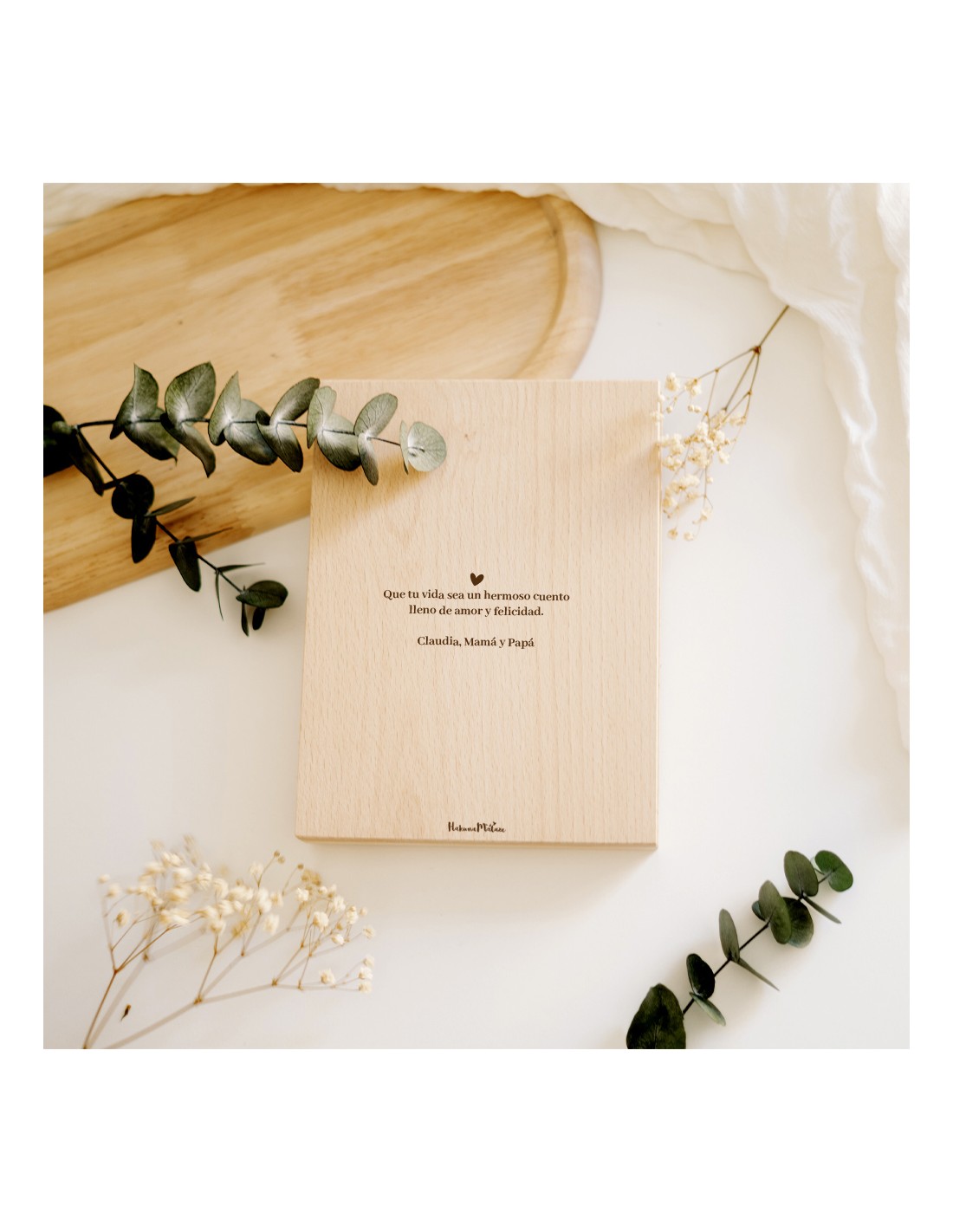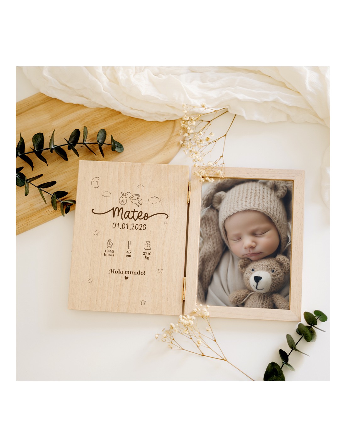 Un marco libro especial para dar la bienvenida al mundo a ese bebé tan esperado. Personaliza la portada con el nombre y una dedicatoria única, creando un regalo lleno de emoción y ternura.