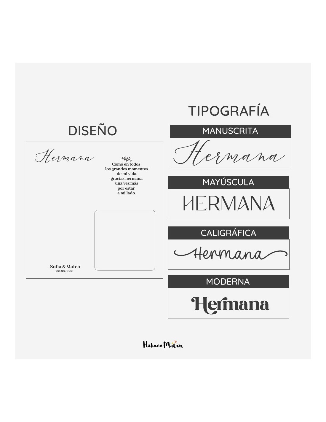 - ✔ Algunos diseños permiten elegir entre varias tipografías sin coste extra.