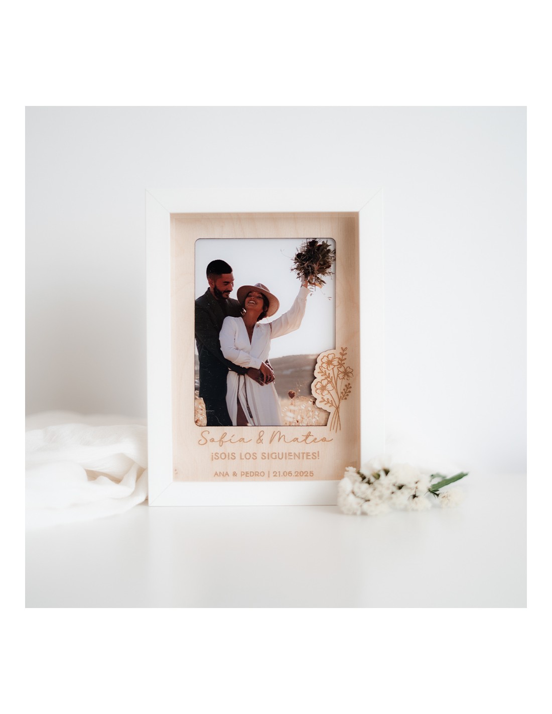 🎁 Un marco sencillo, bonito y muy especial. Ideal como regalo personalizado para bodas, nacimientos, aniversarios, o simplemente para decir: “Sois los siguientes”. 💛