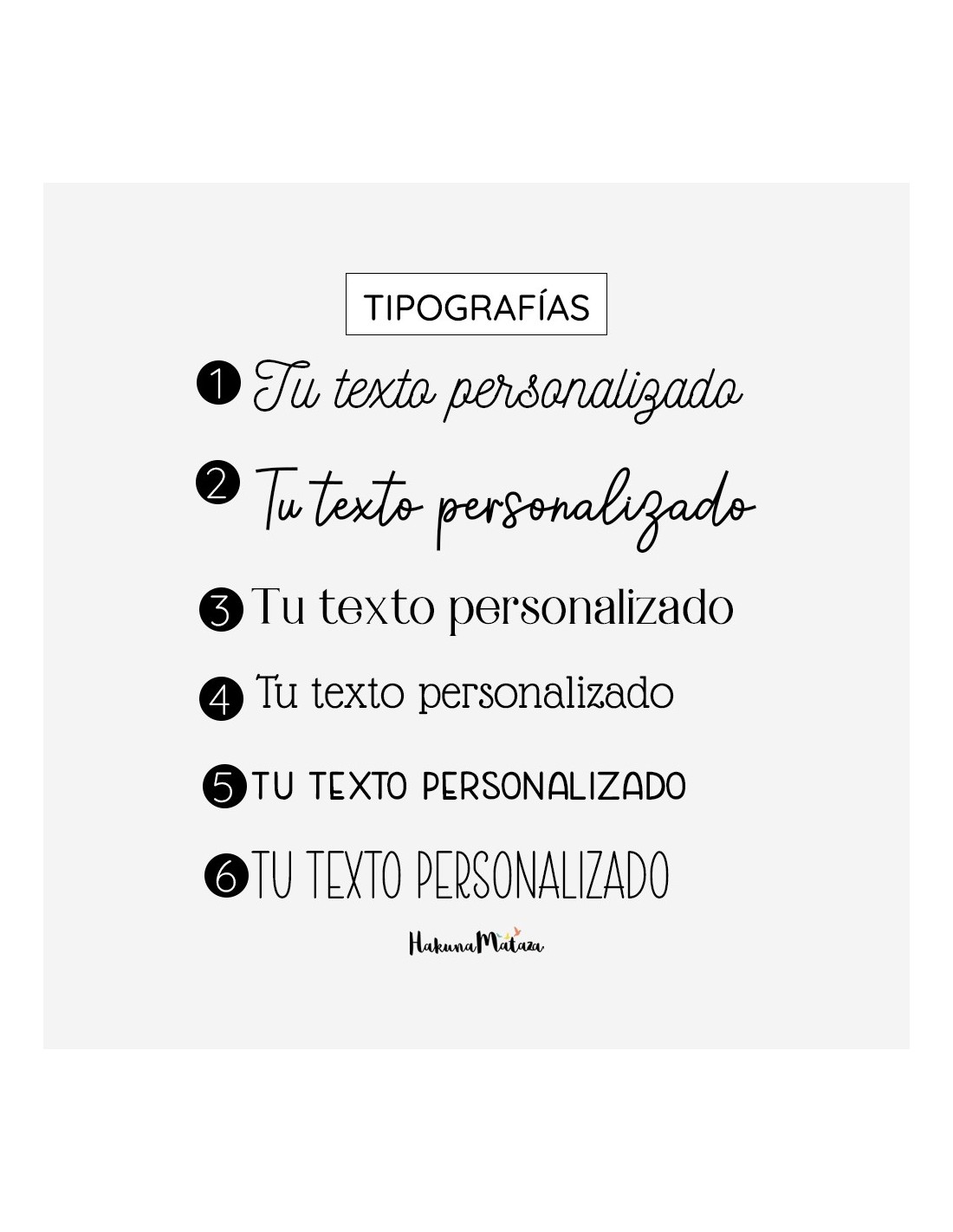 Nota: El nombre más largo irá en la parte inferior para generar armonía. La tipografía de la parte trasera será siempre igual a la que ves en el ejemplo.
