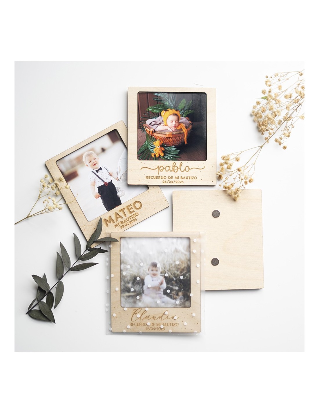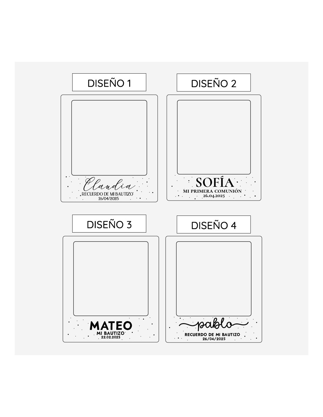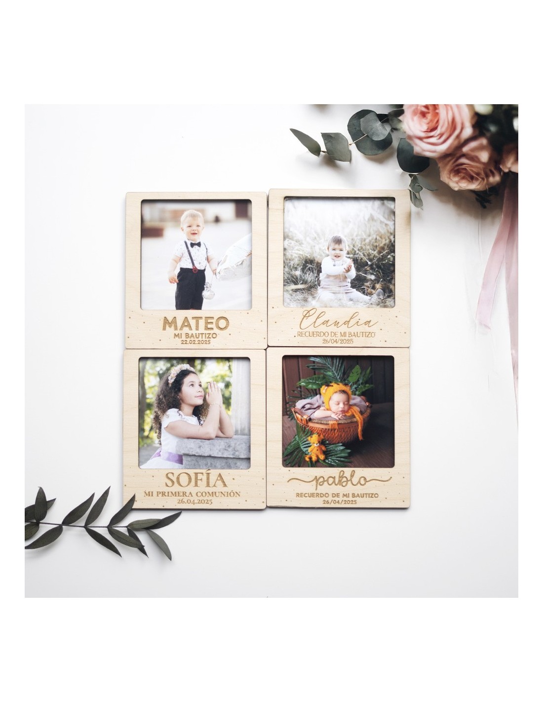 Marco recordatorio polaroid - Nombre. Un marco pequeño que guarda grandes recuerdos: con tu foto favorita y el nombre grabado en el diseño.