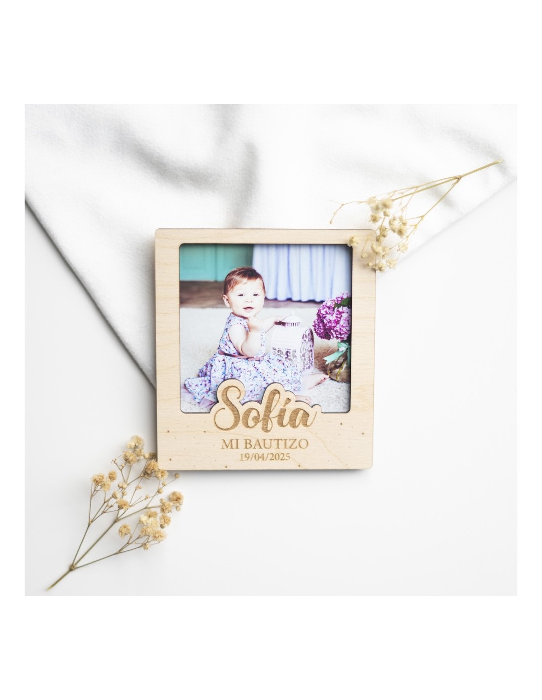 Un recuerdo que se toca, se mira y se siente. Este mini marco con foto y nombre en relieve es mucho más que un detalle: es una manera de revivir ese día tan especial cada vez que se vea en la nevera o en cualquier rincón del hogar.