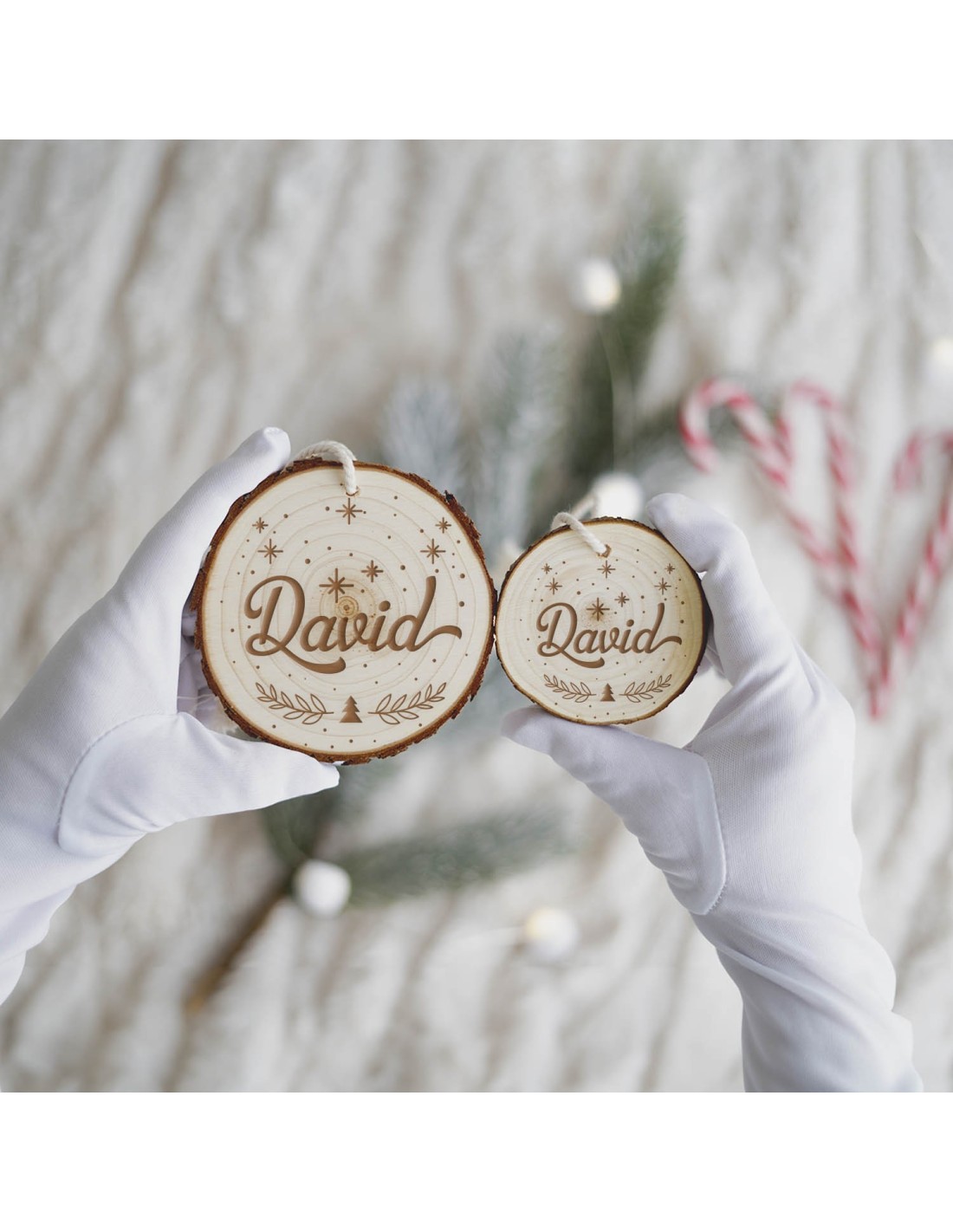 Rodajas de madera personalizadas hechas con mimo, que convierten cada Navidad en un recuerdo auténtico y lleno de naturaleza. 🌲