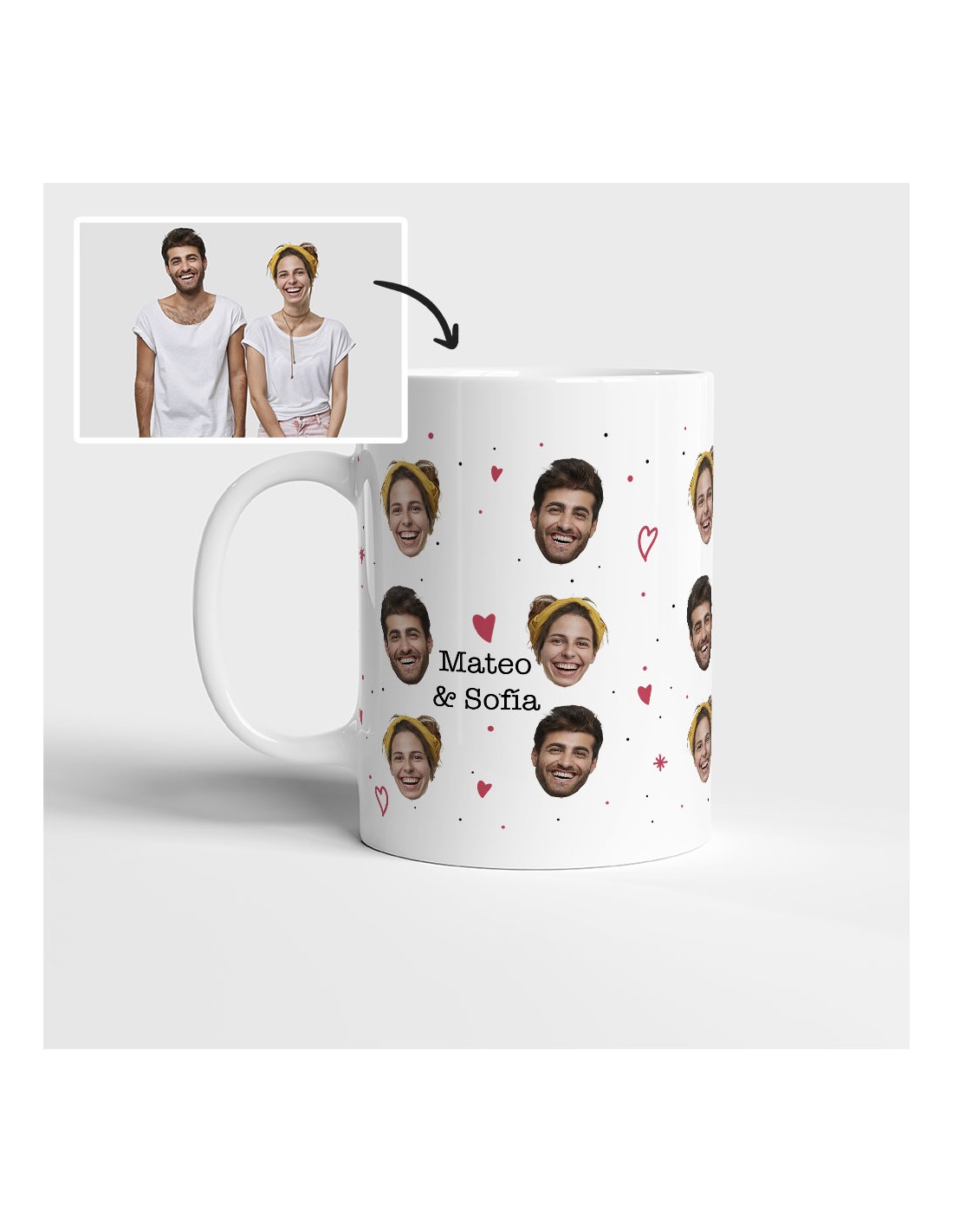Un diseño divertido con la cara de tu persona favorita ideal para celebrar el amor de una manera única. Envía tu foto en fondo blanco y con las caras separadas para que el resultado sea ¡wow!. (Máximo 2 caras)